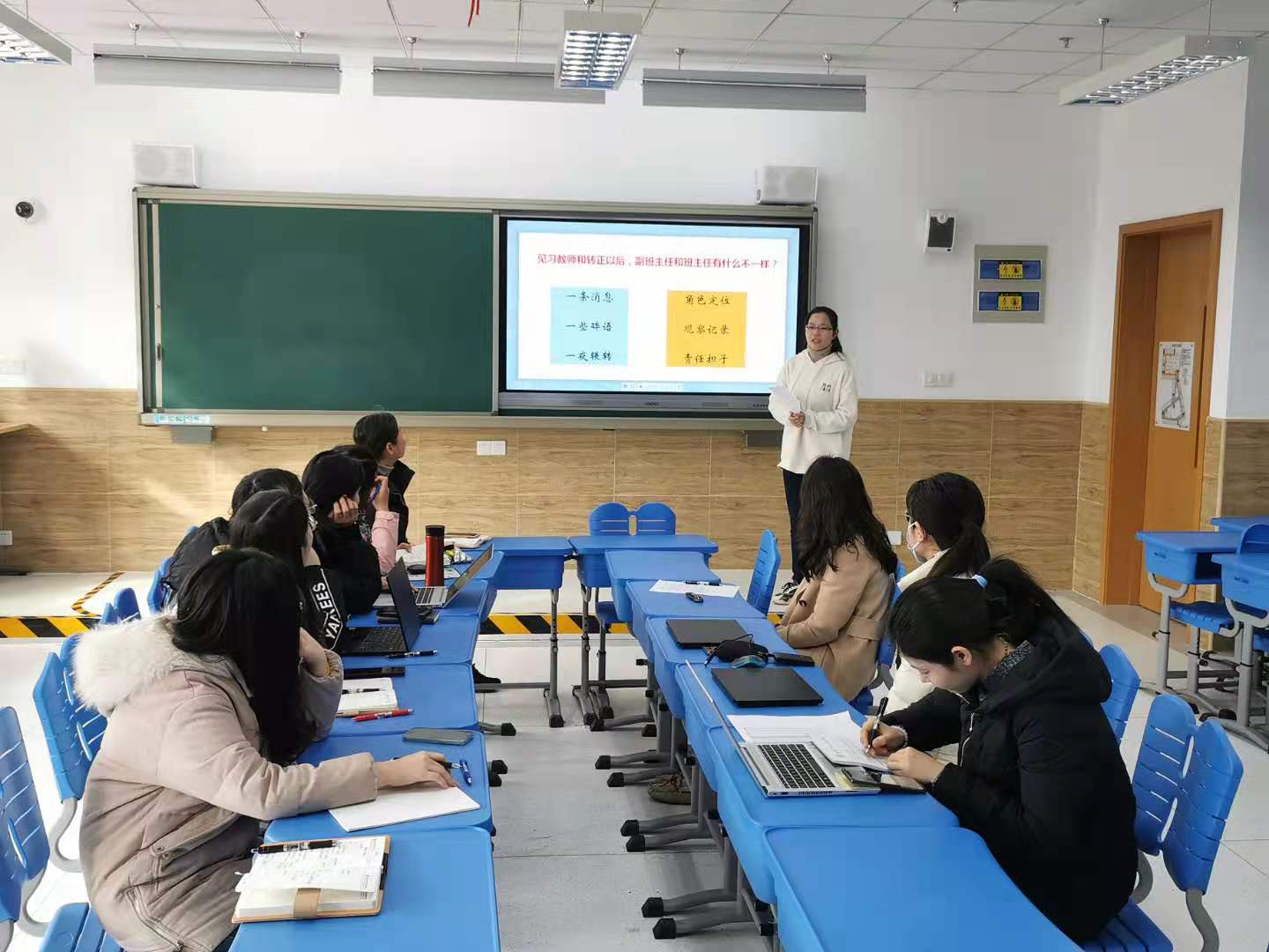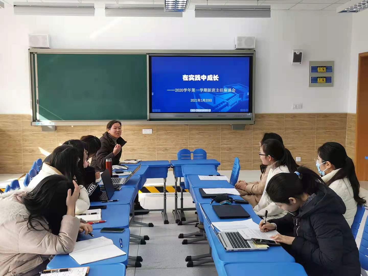 2021年1月20日上午9点30分,2020学年第一学期新班主任座谈会在七年级9班召开。参会人员有德育处主任朱启洪老师,2020学年新班主任,见习教师等。