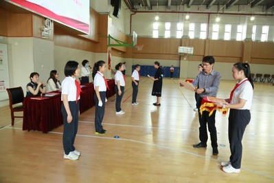 学校领导为本次新生入学教育中各类优胜班级及各班五好营员颁发了奖项。