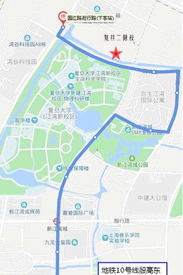 复旦二附校 邯郸校区 (政修路130号) | 换乘方式一:地铁10号线从国权路站至新江湾城站,换乘168路至国帆路/恒学路下车,再步行30米至学校正门(恒学路100号) 换乘方式二:复旦大学乘168路至国帆路/恒学路下车,再步行30米至学校正门(恒学路100号) |