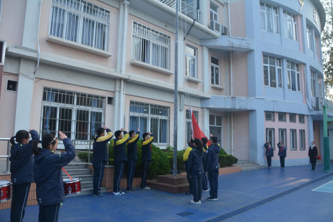礼毕。本周荣誉升旗手为初一五班张意清同学和杨隽溪同学,张意清同学学习勤勉认真,期中考进步很大;杨隽溪同学班干部工作耐心细致,谦和热忱。