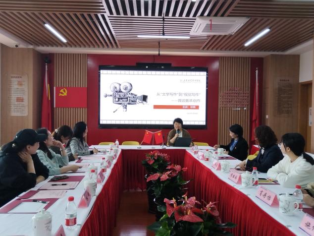 签约仪式后,文化创意产业管理学院副教授林琳带来题为《从“文学写作”到“视觉写作”——微谈剧本创作》的讲座。他以其深厚的学术功底和丰富的实践经验,为老师们详细解读了文学创作与影视剧本创作之间的区别与联系,分享了创作过程中的心得体会。通过她深入浅出地讲解,与会老师们对剧本有了全新的认识,也对初中的整本书阅读教学有了新的思考。