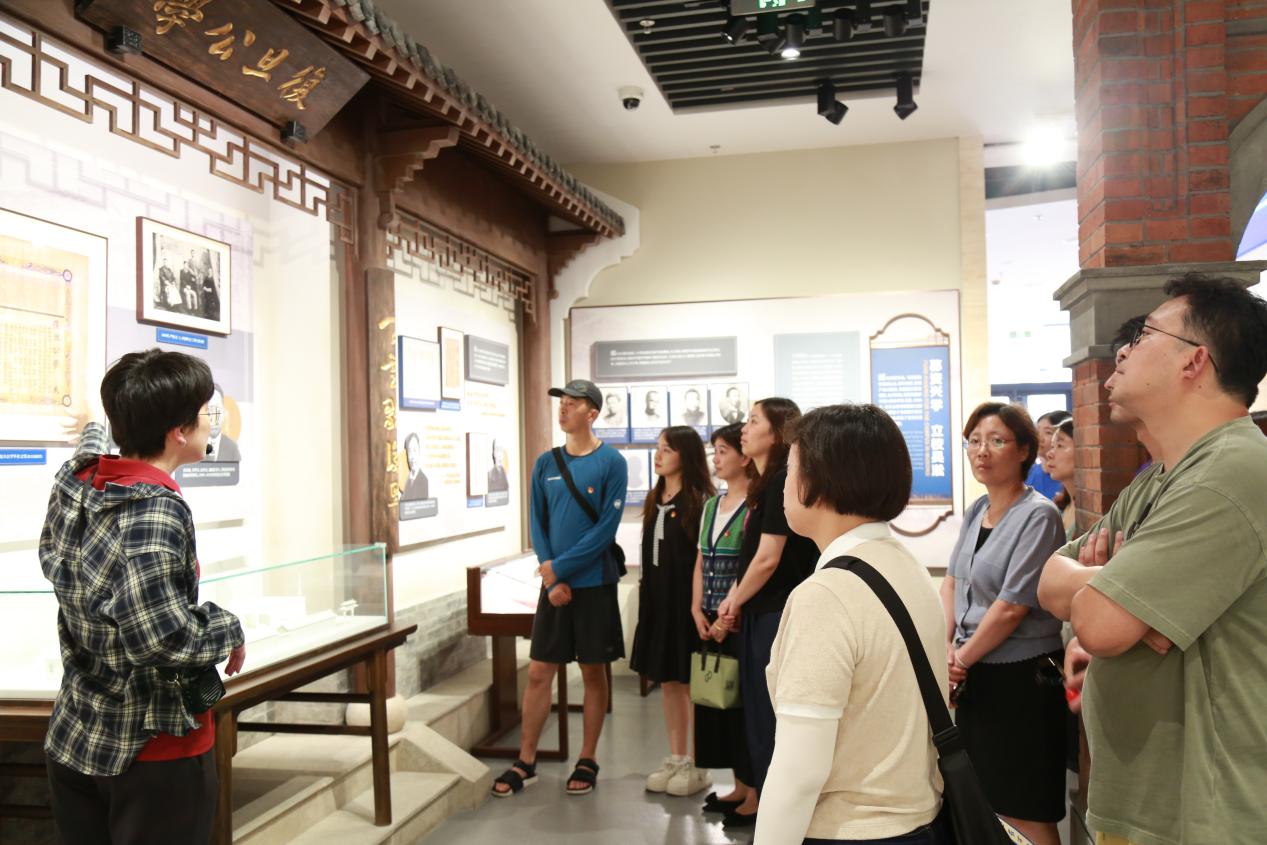 仪式结束后,全体党员在专业讲解员的引导下,步入校史馆进行深入学习。大家通过珍贵的史料和详实的讲解,系统回顾了复旦大学120年来“同民族共命运、与时代相偕行”的光辉历程,深刻感悟了学校光荣的爱国传统、严谨的优良校风以及为国家富强、民族复兴作出的重要贡献。参观过程中,党员们特别结合“习近平总书记贺信”中内容对复旦大学深厚历史积淀和卓越办学成就的高度肯定,深入思考贺信精神对当前基础教育工作的深刻指导意义。