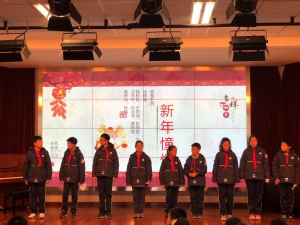 预备5班的诗朗诵《新年憧憬》把演出推向另一个高潮。表演者用诗的语言,表达了当代少年对未来新生活的憧憬和热爱之情。