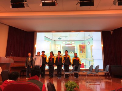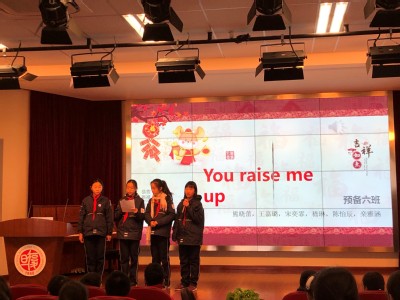 迎新活动在两位小主持人的新年祝福声中拉开序幕。两位主持人分别是预备5班的潘卓林同学和马霄羽同学,整个活动在他们的主持下,生动活泼,富有青春的活力。第一个节目是预备1班带来的相声《初中生活伴迎新》,两位同学通过诙谐风趣,惟妙惟肖的语言,在舞台上树立了鲜活的人物形象,富有浓厚的生活气息,让人感到亲切、有趣,给老师和同学留下深刻印象。接下来,预备6班的六位女生演唱了优雅欢快的《You raise me up》,给人耳目一新的享受。