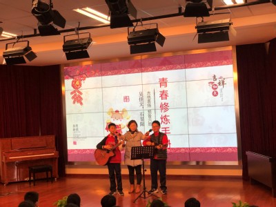 2019年12月27日下午,复旦附中旦华楼6楼,流光溢彩、歌声阵阵、掌声雷动,洋溢着欢乐和祥和。复旦二附校2023届预备年级全体师生在这里举办迎新年活动,此次活动的节目内容丰富多彩,形式多种多样,有舞蹈、歌曲、相声小品、诗朗诵等。