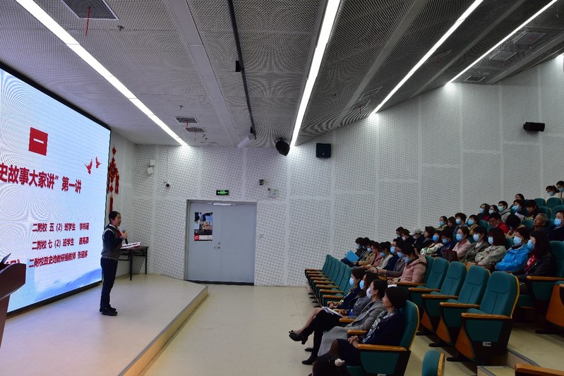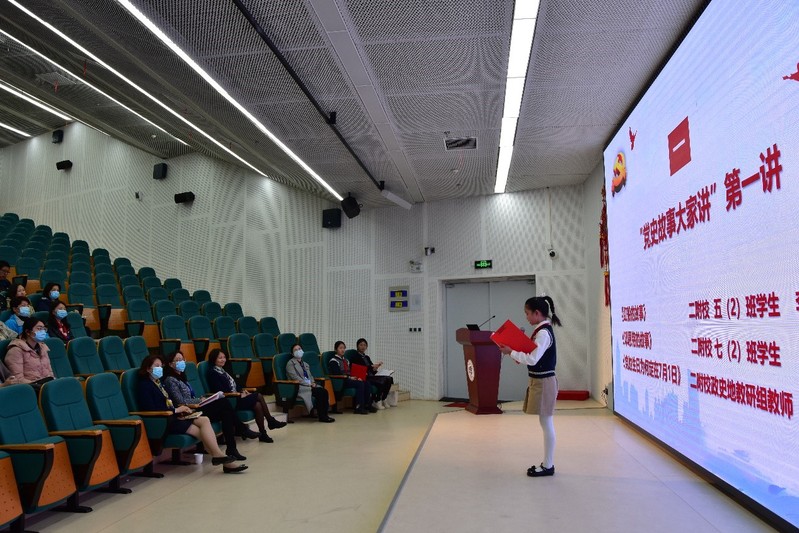为了更好的进行党史学习教育,学校组建了由青年党员、中小学生、家长志愿者、专家学者组成的党史故事宣讲团,通过100个党史故事,进行面向党员教师、中小学生的学习宣讲。动员大会上,“党史故事第一讲”开讲,五(2)班学生李梓萌、七(2)班唐高卿和党员教师张瑶婷带来《红船的故事》、《邓恩铭的故事》和《党的生日为何定在七月一日》,演讲师生娓娓道来、声情并茂,听众认真聆听,重温党史,为复旦二附校党史学习开了个好头。