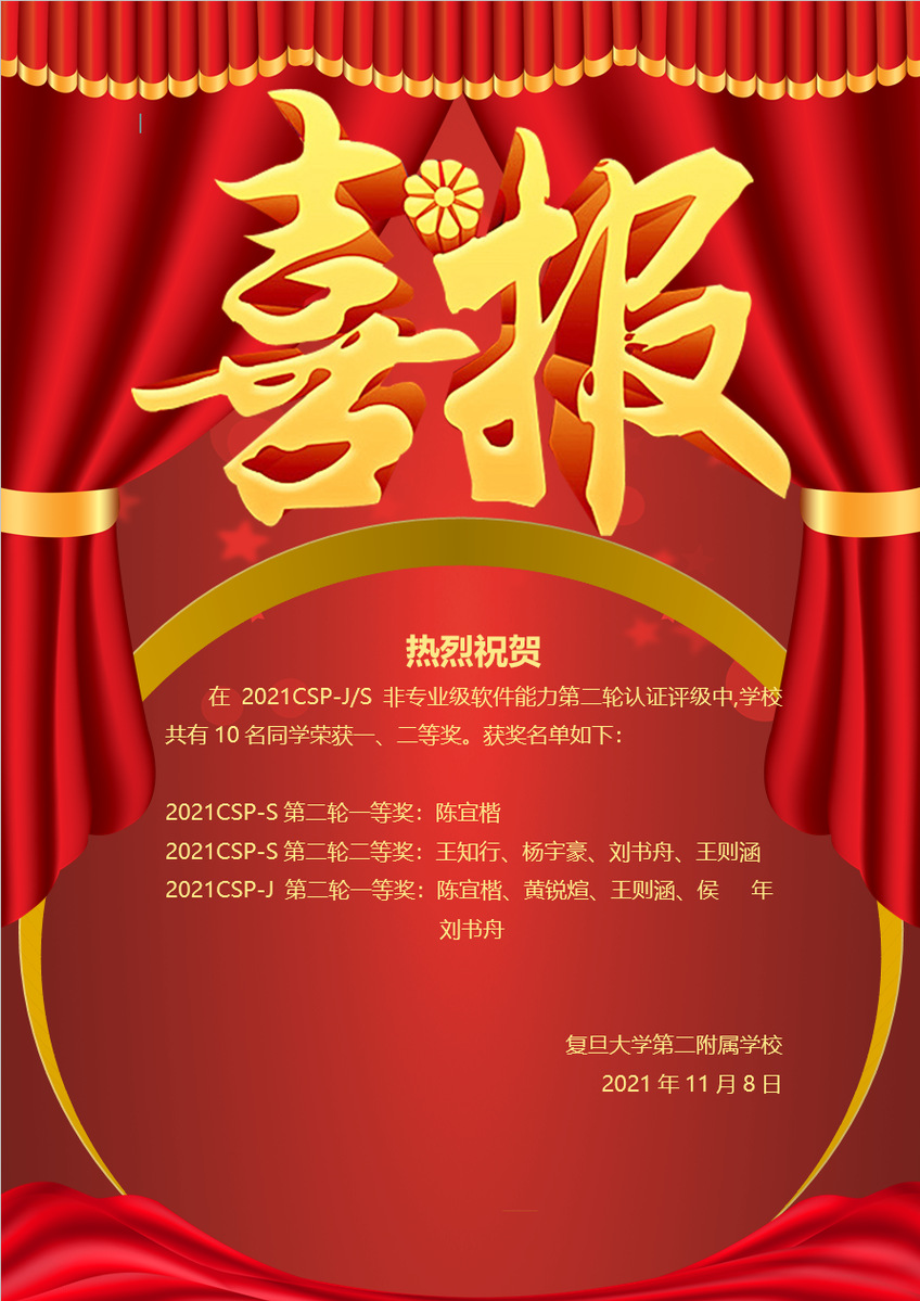 Copyright ?2019 - 2020 复旦大学第二附属学校 版权所有地址:上海市 杨浦区 恒学路100号(江湾校区) 政修路130号(邯郸校区)邮编:200438