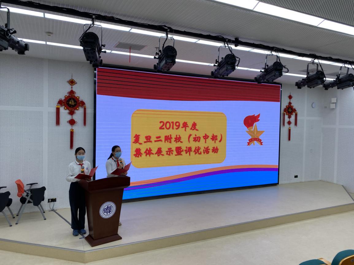2020年5月21日中午,我校“2019年度复旦二附校(初中部)集体展示暨评优活动”在阶梯教室报告厅隆重举行。本次活动旨在挖掘和塑造优秀班集体的典型,传递良好的班风和优良的学风,充分发挥优秀班集体的示范作用。本次评审严格按照规定的评选条件、标准和程序,坚持公开、公平、公正的原则进行。