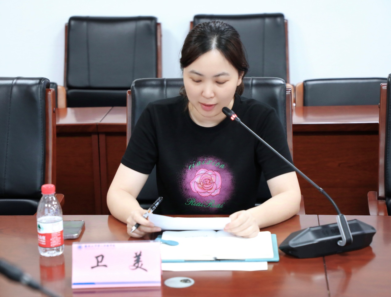 干部人才预备队队员代表,大队辅导员卫美老师分享了她的跟岗感受。她用三个关键词责任重大、团结协作、持续学习,总结了这一学期的跟岗感悟与收获。同时,她也提出了包括加强时间管理、适应角色转变以及深化理论学习等方面的提升目标。