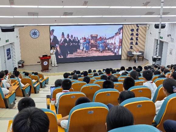 2024年9月26日下午,复旦大学第二附属学校B1阶梯教室座无虚席,七年级学生齐聚一堂,共同参与了以“电影梦”为主题的精彩讲座。本次讲座由复旦大学艺术教育中心副教授、知名导演及编剧许肖潇主讲,许教授以独特的视角和丰富的经验,引领学生们深入探索了胡金铨导演构建的武侠世界及其艺术遗产。