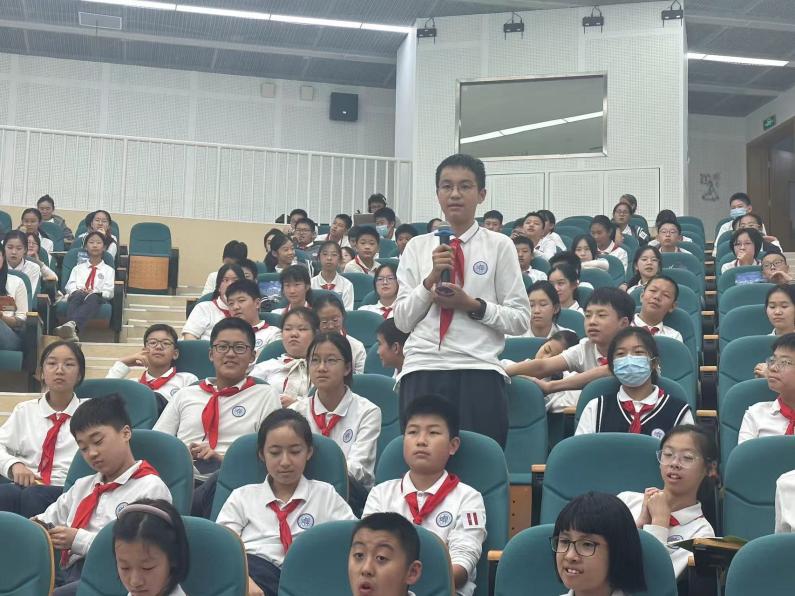 最后,褚院士由神州十四号载人飞船发射升空的历史性事件,总结出“循规、极致、勤奋、踏实、兴趣、责任、奋斗、合作”这一成功八要素,他寄希望于赶上智能时代浪潮的我们,要抢占科技创新制高点,以建设人类美好家园为己任。此外,我们同学也要从小培育飞翔的潜能:即健康的体魄和心灵(科学精神)。褚院士讲到我们要像小草那样,随遇、谦和、顽强,他借用铁杵磨成针、少林寺练功房、阅兵式的整齐划一、以及通过两个轴承的质量比较教育大家培养追求极致的精神,谆谆教诲我们同学切忌半途而废,做事一定有始有终。在互动环节,现场学生思维活跃,和褚院士进行了热情探讨交流,受益颇多。讲座在经久不息的热烈掌声中落下帷幕,让我们期待下一次星空的相遇!