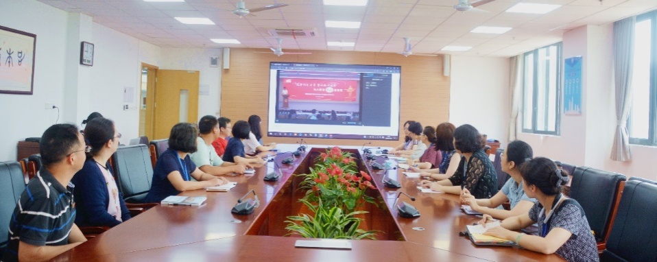2020年6月30日上午,在“七一建党节”前夕,复旦二附校全体党员干部及部分教师在步德楼四楼第一会议室收看杨浦区教育系统庆祝中国共产党99周年大会,回顾党的光辉历史,接受生动的“四史教育”,共同汲取红色力量,牢记初心使命。
