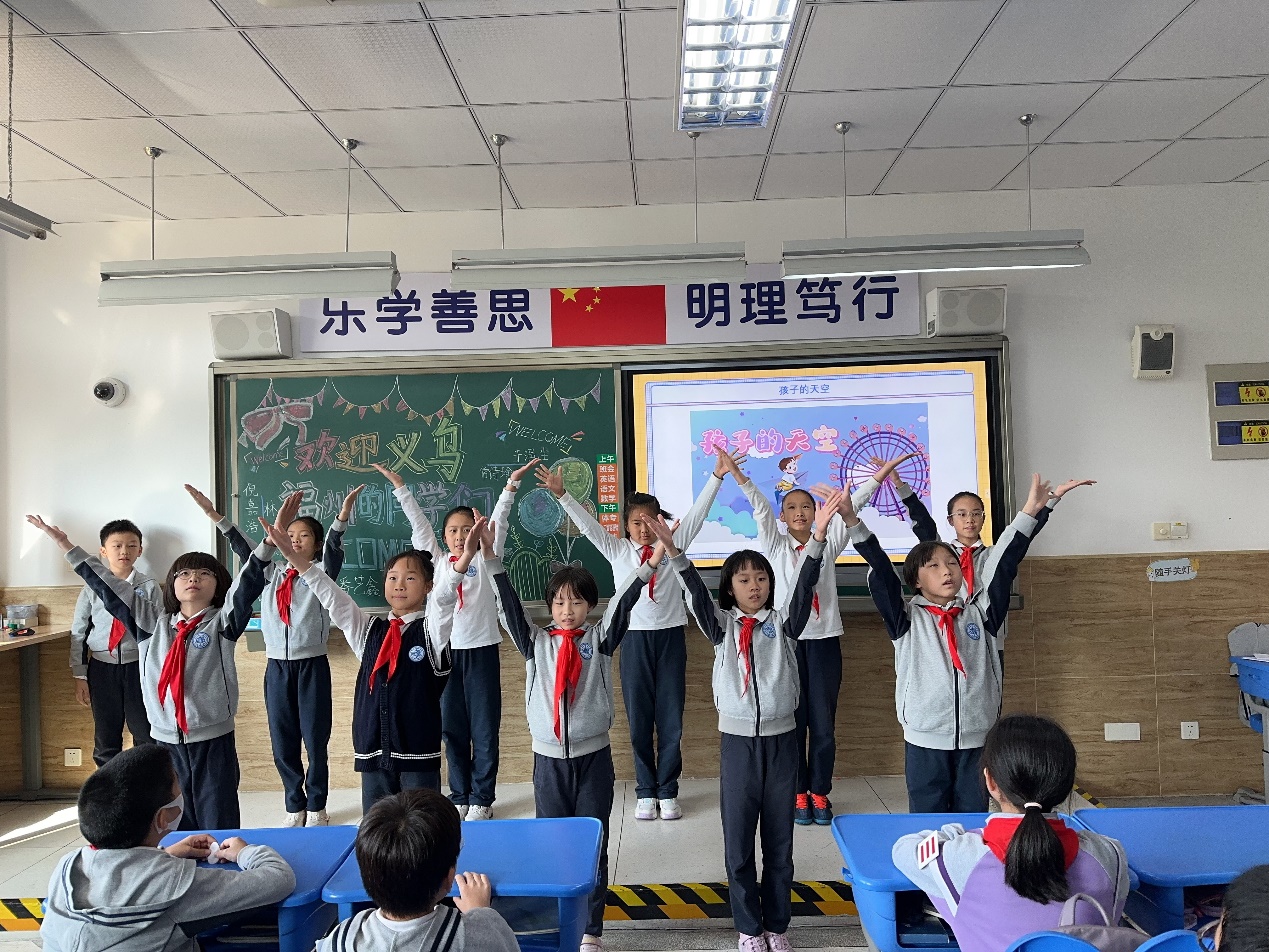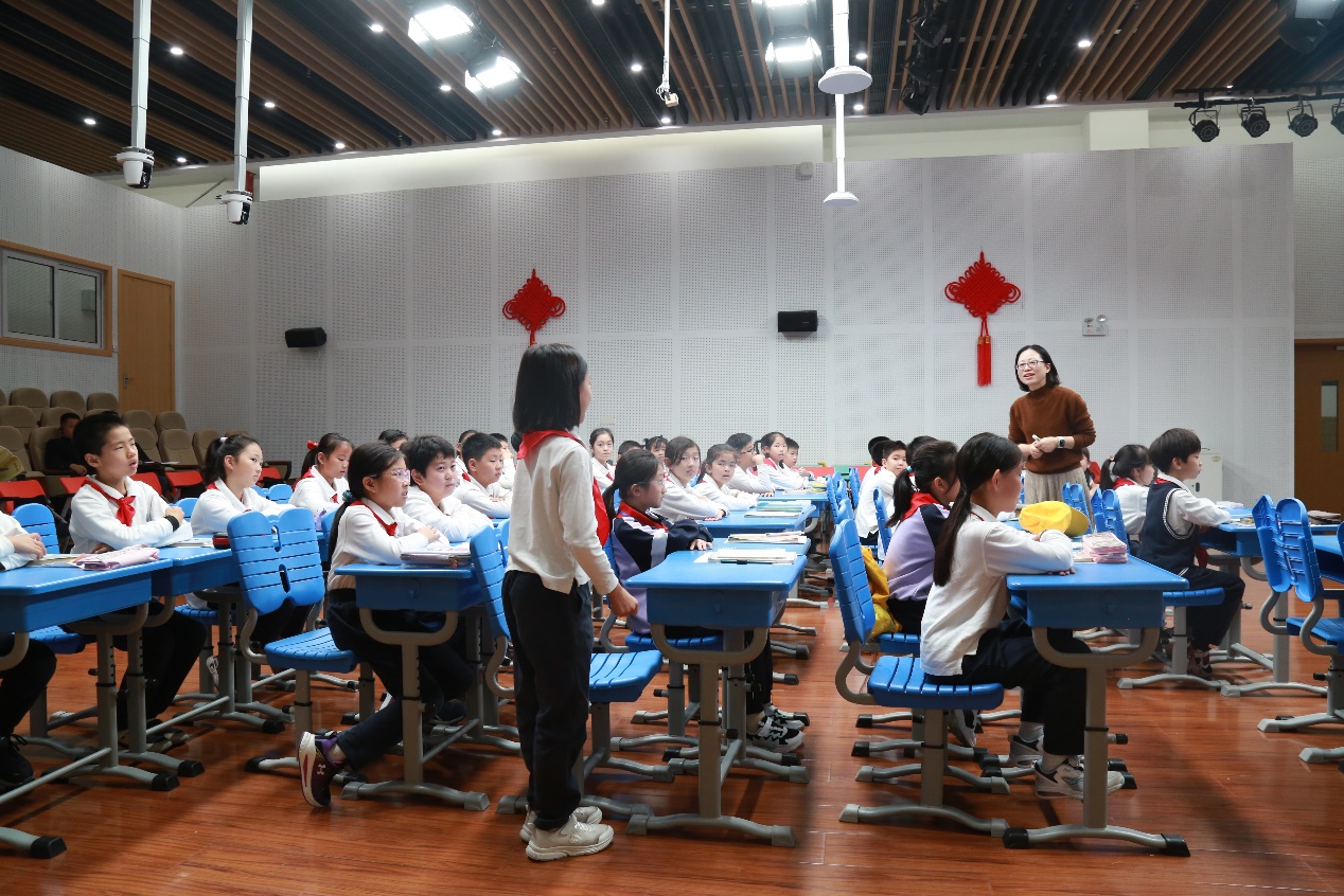 校舞蹈队表演了舞蹈《晓春·蝶儿飞》,以轻盈的舞步展现了春天的生机与活力;四(2)中队带来声情并茂的朗诵《走月亮》,带领大家领略了诗意盎然的月夜美景,赢得了来访师生的阵阵掌声与高度赞誉。