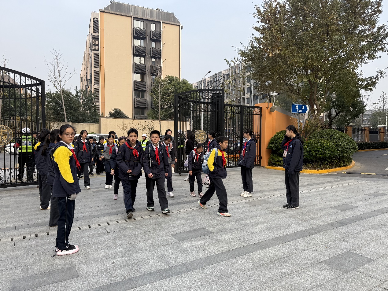 学校组织家、校、警三方共同商议,研究制定了“三区域两循环一错峰”的方案措施。“三区域”即设置“安全过街隔离区、非机动车专用临停区、人行道安全护送区”,减少车辆随意停放、穿行造成的拥堵,保障师生安全、快速通行?!傲窖贰奔词凳?/span>早晚高峰期校园路口临时禁左、禁掉头管控机制,实现车辆分别沿世纪江湾小区、复旦二附校外围道路顺时针循环进出?!耙淮矸濉奔从裳O富硎苯铀头桨?,用时间换空间,减少瞬时汇聚的人车流量。