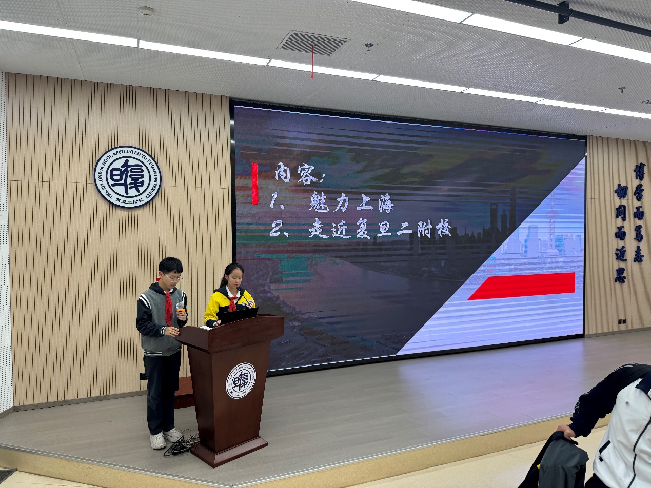 11月18日,欢迎仪式在小剧场举行。瞿丽红书记对来访师生表达最热忱的欢迎。她介绍了二附校富有特色的“研学行走课程群”以及本次研学活动的安排;表达了对同学们的期望,希望这次“研学行走”之旅,成为“领略”之旅、“感悟”之旅、“体验”之旅、“收获”之旅,来访同学都能研有所思,学有所获。
