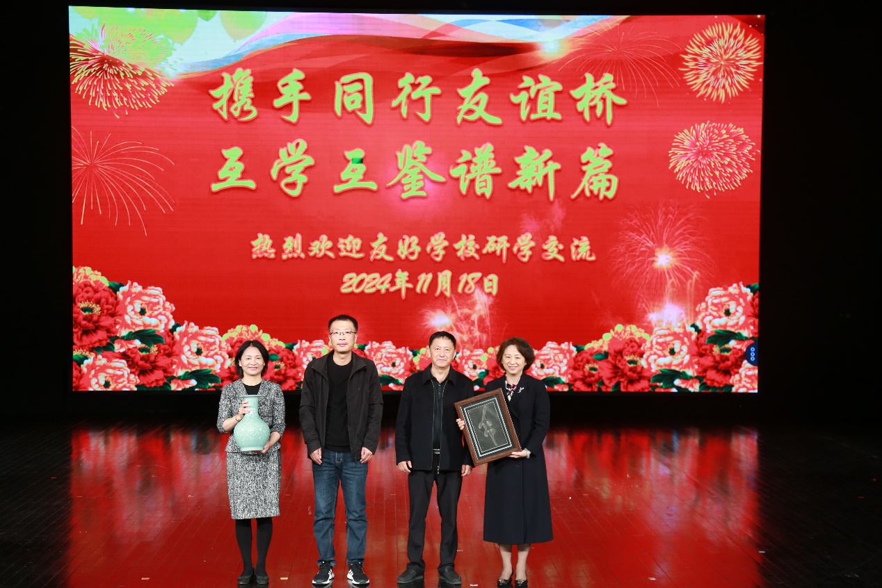 李鸿娟校长、瞿丽红书记代表学校接受了贵阳华麟学校、淄博博山中学赠送的礼物。