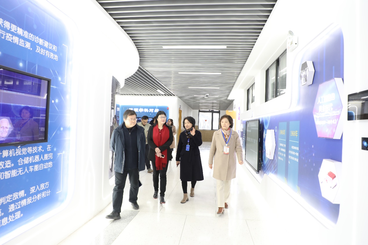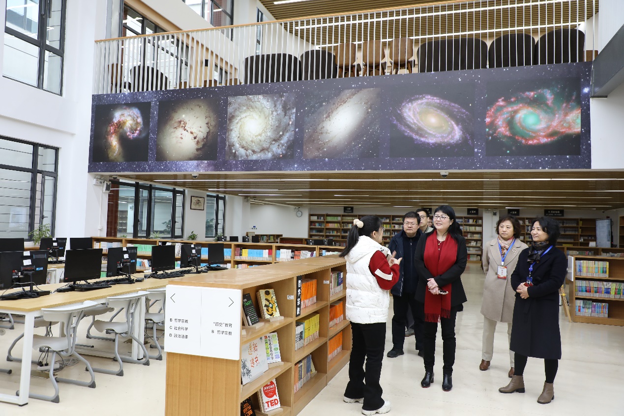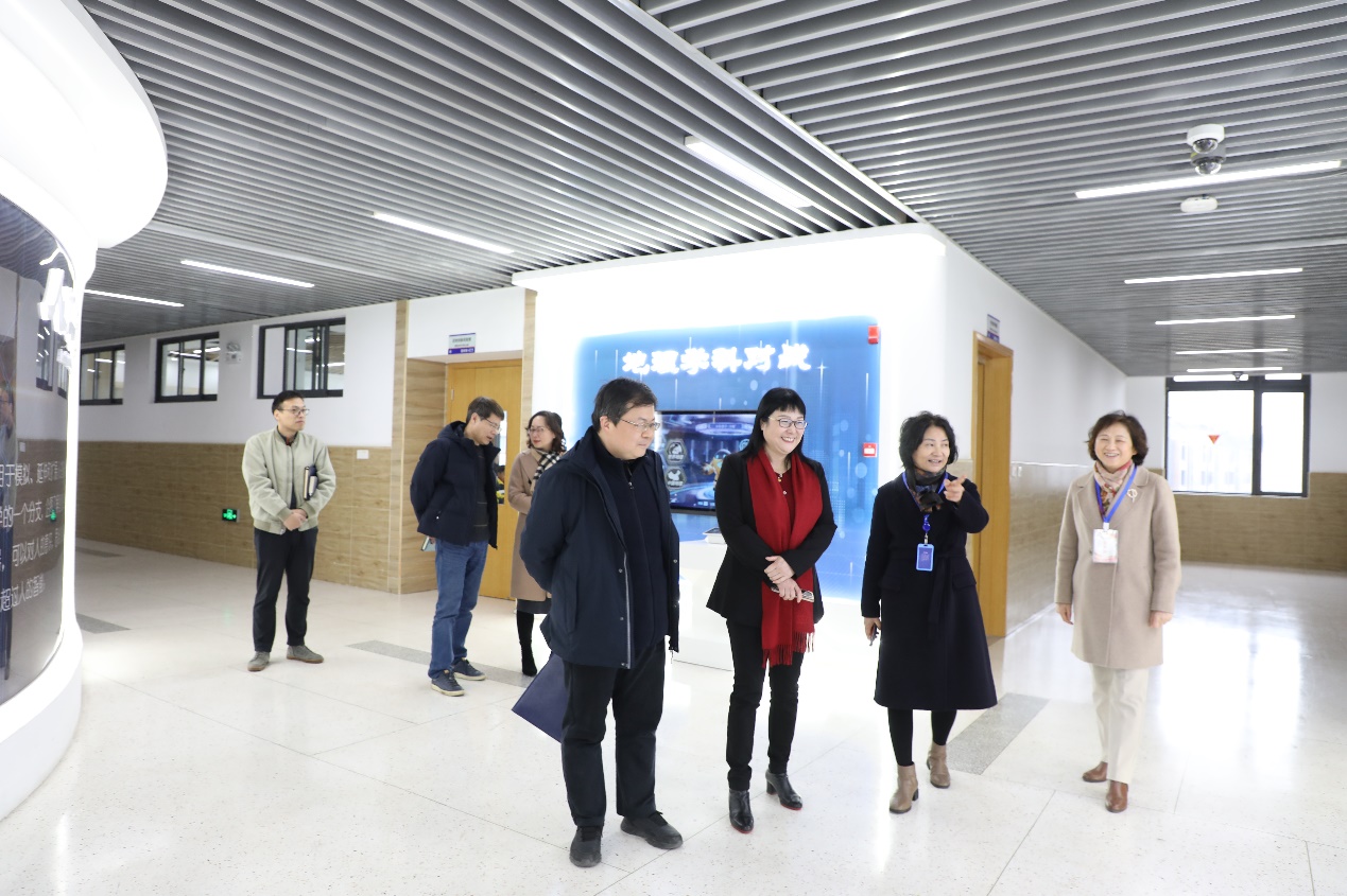 王芳局长一行实地走访了学校校史廊、党建活动中心、人工智能专用教室、心理健康中心、图书馆、体育馆等师生活动场所,并听取学校领导关于校园安全、人才队伍建设、学生培养、特色办学等方面的情况汇报。
