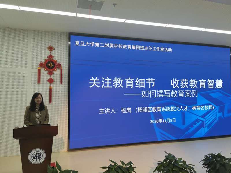 11月5日下午,复旦大学第二附属学校教育集团的班主任老师们,齐聚在学校阶梯教室,认真聆听杨浦区教育系统拔尖人才、德育名教师杨岚老师带来的《关注教育细节 收获教育智慧——如何撰写教育案例》讲座。