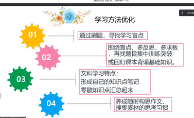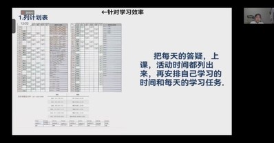 第二板块由班级成绩优异的孔彧同学给大家分享“时间管理与高效学习方法”,并以历史中考复习为例做了展开介绍:首先收集、整理两轮复习当中的问题知识点+专题,然后制定行动清单(组织、回顾),最后落实到行动(完善笔记、认真作业、上好答疑课)??讖Щ雇ü约旱难俺晒?,证明了通过科学时间管理可以达成高效学习。听完后同学们获益颇多。