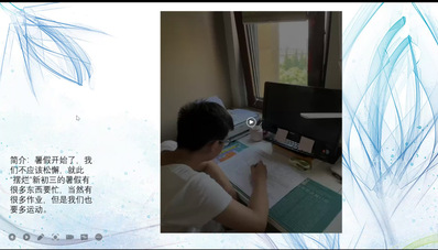 在各科老师殷切敦促后,各战队用文字、图片、视频等方式呈现同学们丰富多彩的假期生活,同学们既脚踏实地、努力认真完成暑期学习任务,也有调节身心的课外拓展、休闲娱乐、体育锻炼、琴棋书画及旅游,疫情并没有使大家生活变得单调,反而增添了居家的趣味。班主任王老师对各小队活动给予了周到的点评。学习之余,偶尔看看远处的风景或近处的花草小宠,未尝不是一件美事,劳逸结合方可致远。