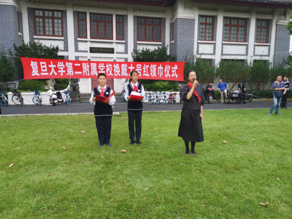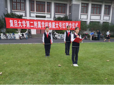 2019年10月11日,全体预备年级同学在复旦大学相辉堂草坪举行了换戴大号红领巾仪式,将原来小号的红领巾换成了大号红领巾。