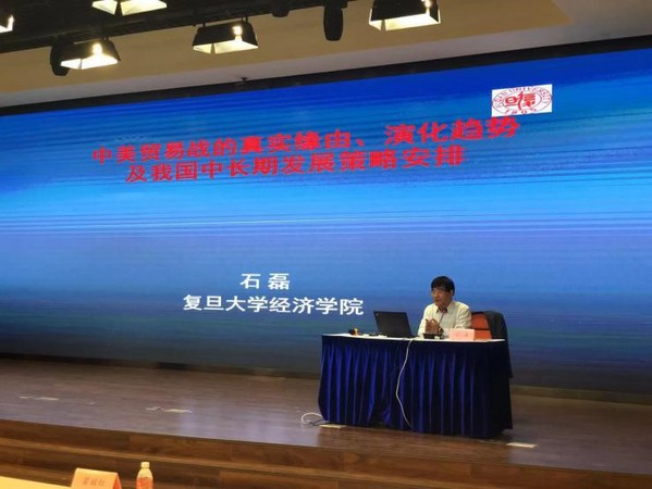 报告会上,石磊教授就中美贸易摩擦进行了深入浅出的解读:通过分析“美方统计对华货物贸易逆差”以及“美国货物贸易逆差中国占比”这两项数据,挖掘数据背后深藏的矛盾根源不是贸易表面上呈现出来的贸易不均衡那么简单,而是基本价值哲学上的冲突。石磊教授例举了许多鲜活的事例,生动形象地诠释了美国的自由主义、实用主义与中国的集体主义之间的价值差异。他还讲到面对中美贸易战,关键是做好自己的事——补关键性体制短板,例如科技、职业教育体系、财税体系。石磊教授认为遏制和反遏制将是中美贸易常态,中国必须要有长期的思想准备,只有加速发展,深化改革,扩大开放,抓紧“补短板”,才能争取主动。