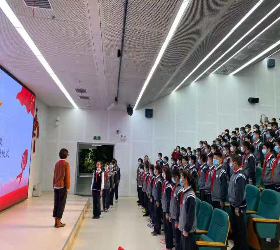 现场老师们也见证了队员们成长中重要时刻。年级组长蔡莉琴老师向队员们提出了期望,希望大家珍爱红领巾,接过大红领巾传递的责任,树立远大的理想。接下来,蔡老师进行了年级期中总结,开展优秀学生表彰大会,嘉奖优秀学生,激励他们发挥榜样力量,带领更多学子奋力拼搏未来。聆听老师和家长的发言后,队员们深受鼓舞,表示要成为志向远大、更有担当的人。