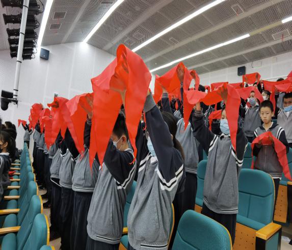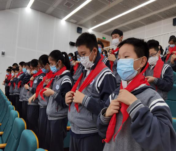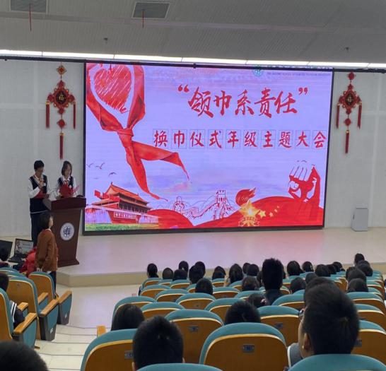 2020年11月20日,全体六年级队员在学校大礼堂举行了隆重的“领巾系责任” 换巾仪式年级主题大会。