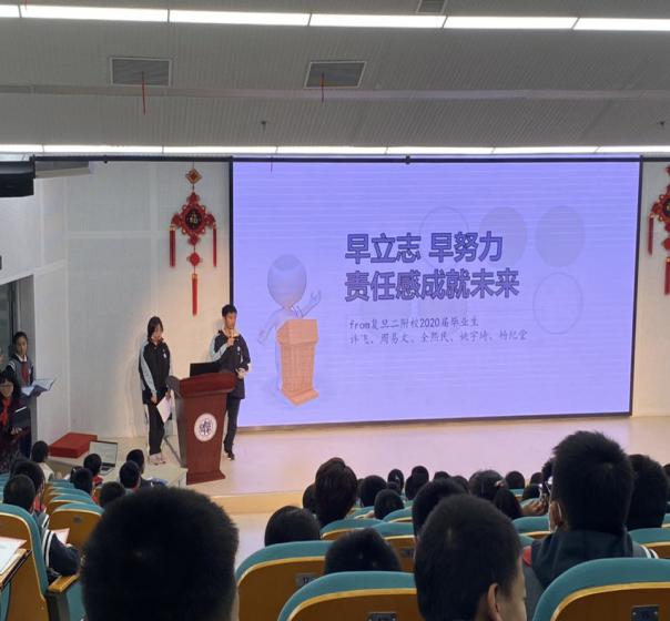 来自复旦附中,交大附中的2020届复旦二附中毕业生学哥学姐们也来到了会场,为我们做了“早立志,早努力,责任感成就未来”的报告,鼓励我们明确目标,及早规划,为理想的目标努力奋斗。