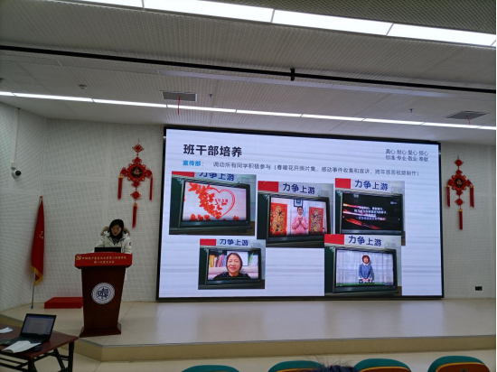 预备年级的罗吾民老师从常规管理、活动组织、工作成效、工作特色四个方面进行班级总计,夯实常规,重在养成,旨在建设一个志有高远、行动有力,让每一个学生获得最适宜成长的班集体。朱燕敏老师注重班风教育、注重学生思想品德教育,增强集体观念,培养高尚的情操,建立一个遵守纪律、团结向上、朝气蓬勃的集体。张留娣老师从物质文化建设、制度文化建设、精神文化建设三个方面进行总结,其中温馨教室的打造给人留下深刻的印象。
