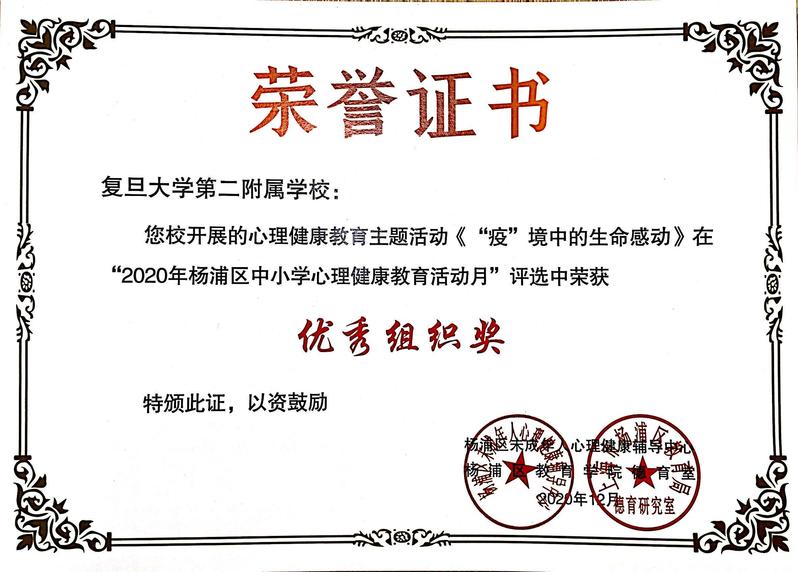 Copyright ?2019 - 2020 复旦大学第二附属学校 版权所有地址:上海市 杨浦区 恒学路100号(江湾校区) 政修路130号(邯郸校区)邮编:200438